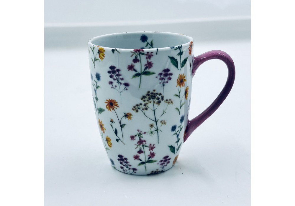 mug en porcelaine 38cl décoré au chromo de petites fleurs des champs anse peinte à la main