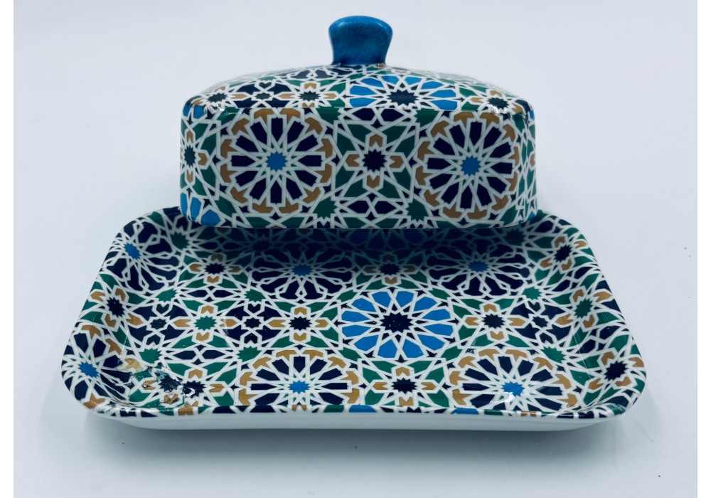 porcelaine de qualité décorée au chromo avec décor de mosaïques rappelant l'Alhambra de Grenade