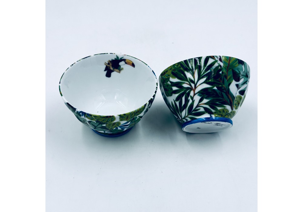 bol à café à côtes décoré de décor au chromo jungle filets peints à la main
