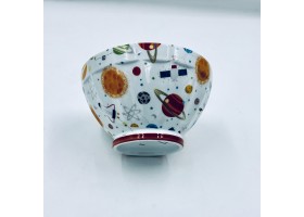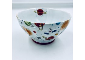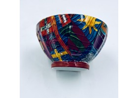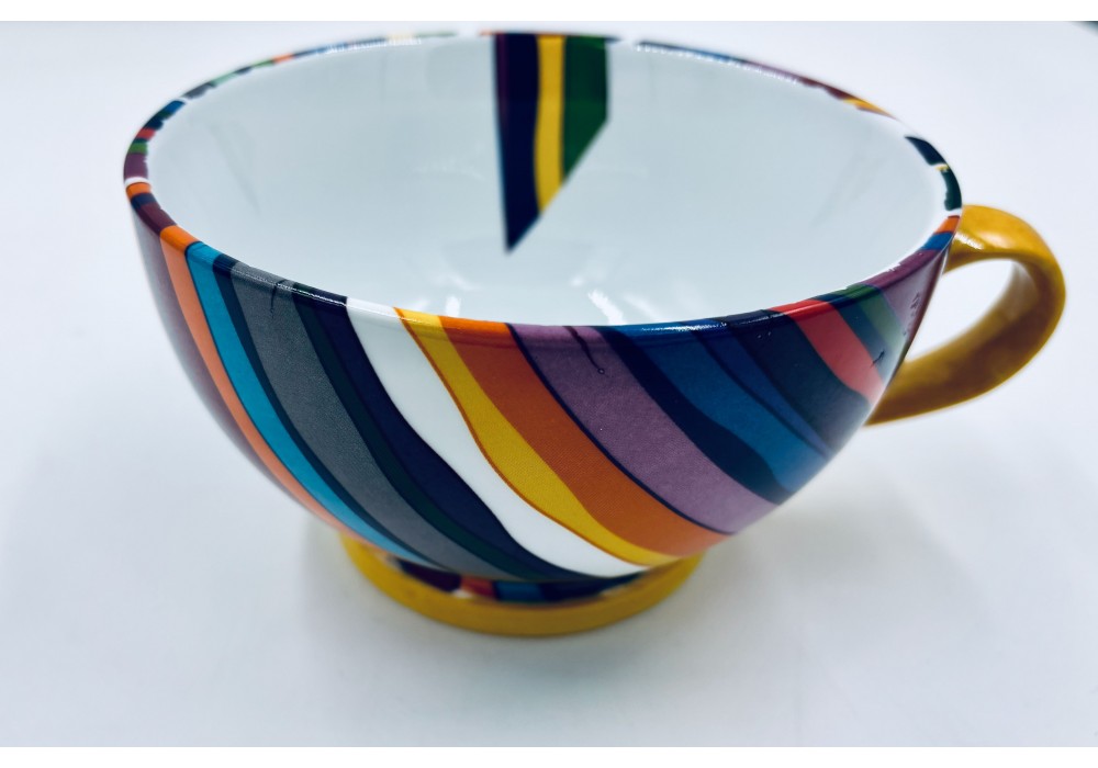 bol avec anse décor de rayures de couleur contenance 75cl , anse peinte à la main .