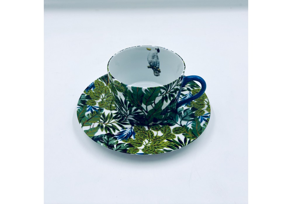 déjeuner empire décoré au chromo de feuilles exotiques anse peinte à la main