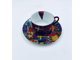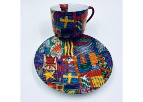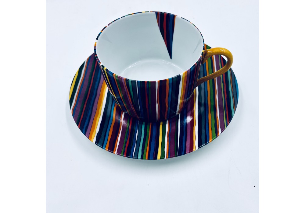 déjeuner en porcelaine décoré au chromo de rayures de couleur anse peinte à la main .