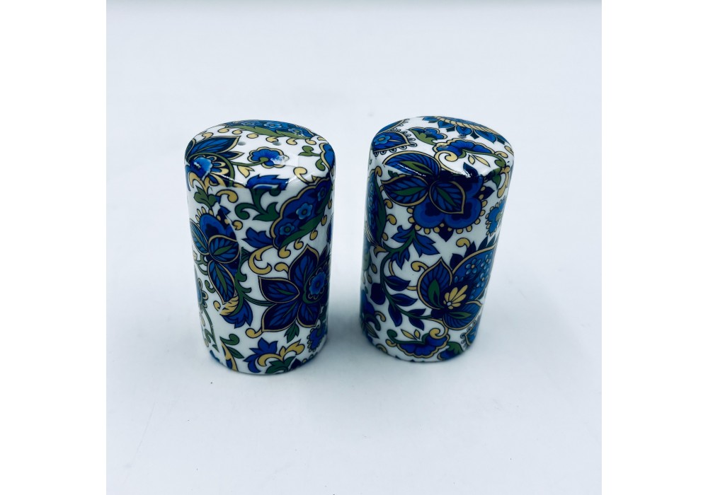 duo sel poivre en porcelaine décor chromo cachemire bleu