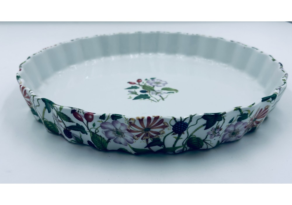 moule à tarte 30 cm en porcelaine dans lequel on peut cuire les gateaux directement dans le four décor au chromo