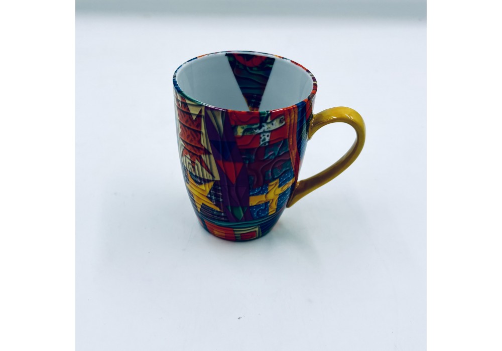 mug 38 cl décoré au chromo d'un décor patchwork coloré anse peinte à la main