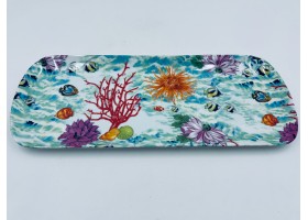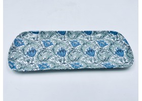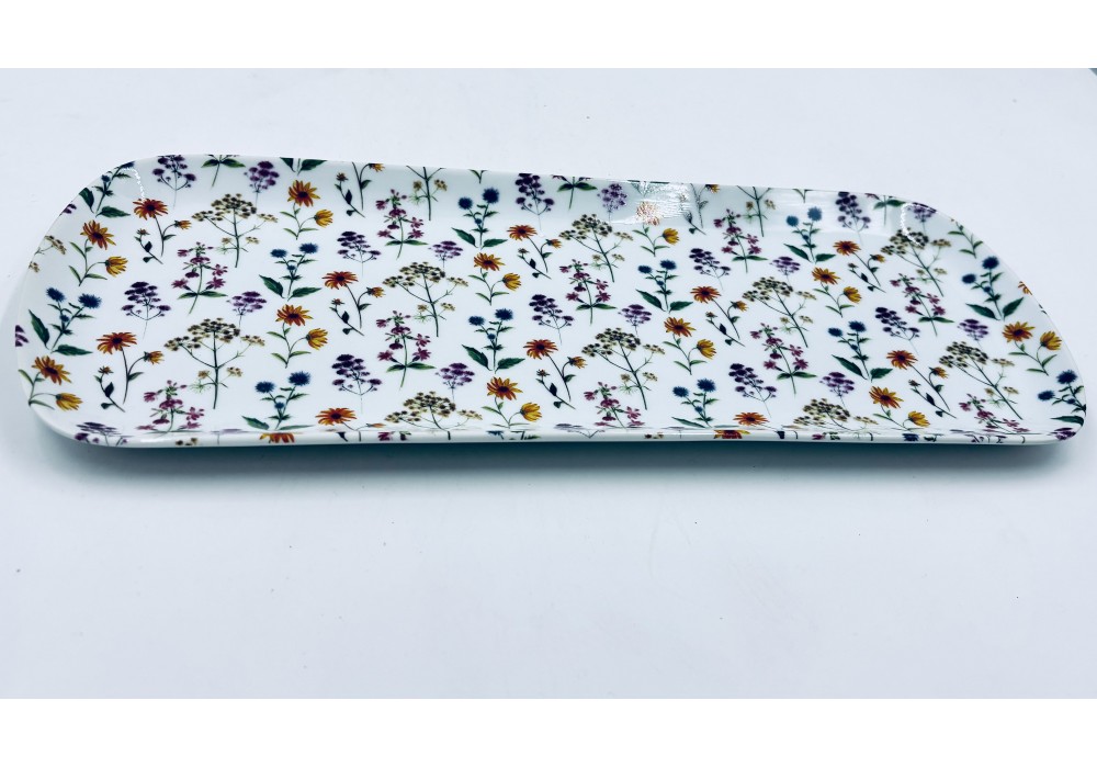 plat à cake en porcelaine L 37x l15 cm décoré au chromo de petites fleurs des champs