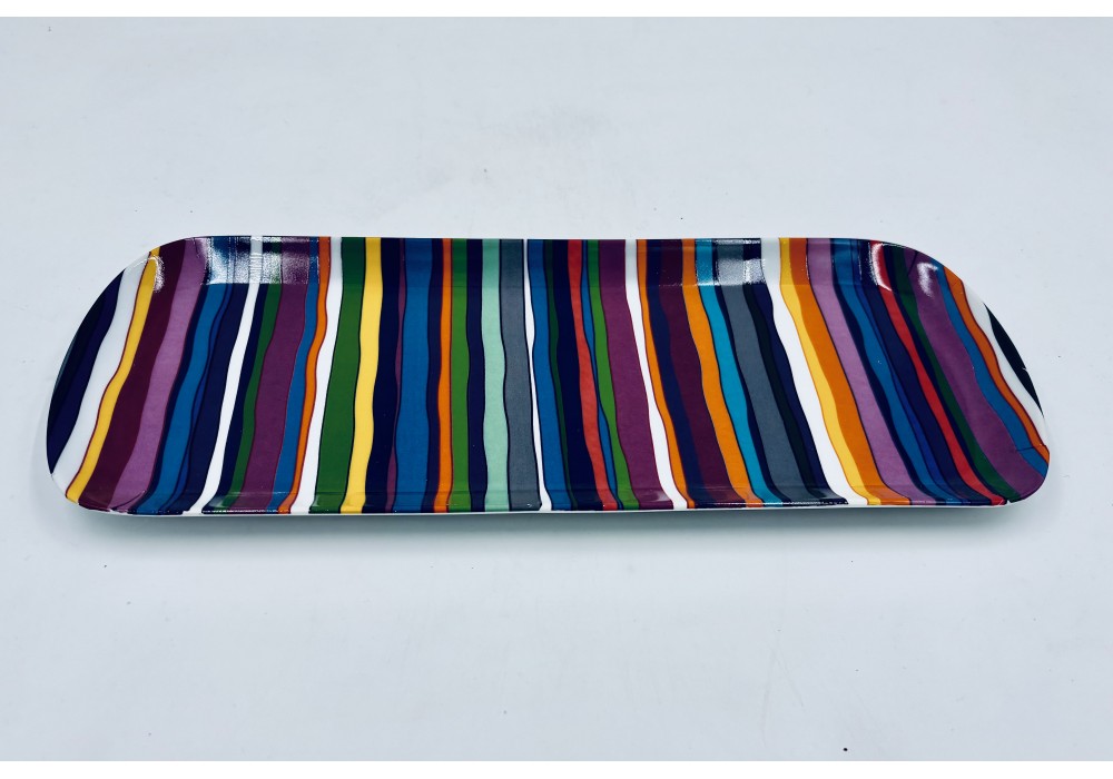 plat à cake L37 x l15cm décor de rayures de couleur .