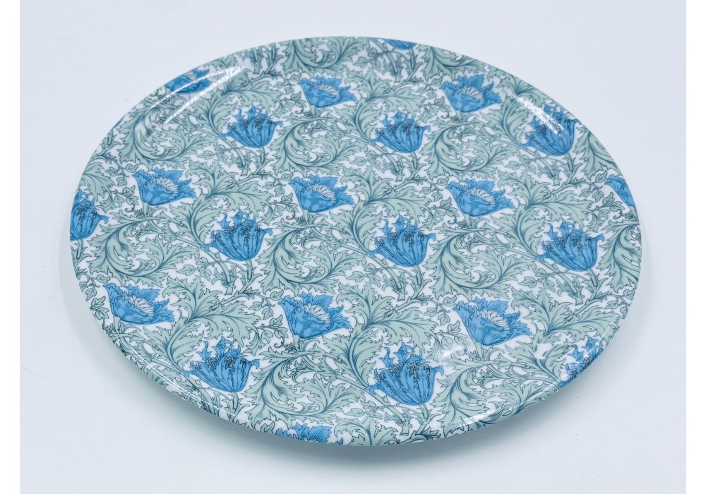 plat à tarte 30 cm en porcelaine décorée au chromo d'un décor d'anémone pastel