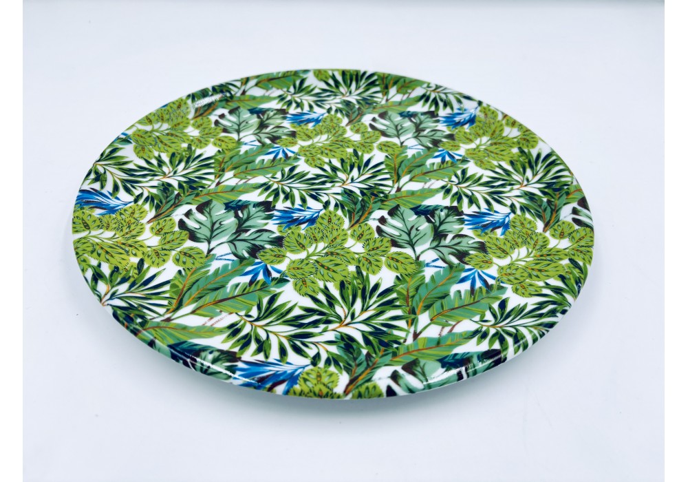plat à tarte 30cm décoré au chromo d'un feuillage jungle