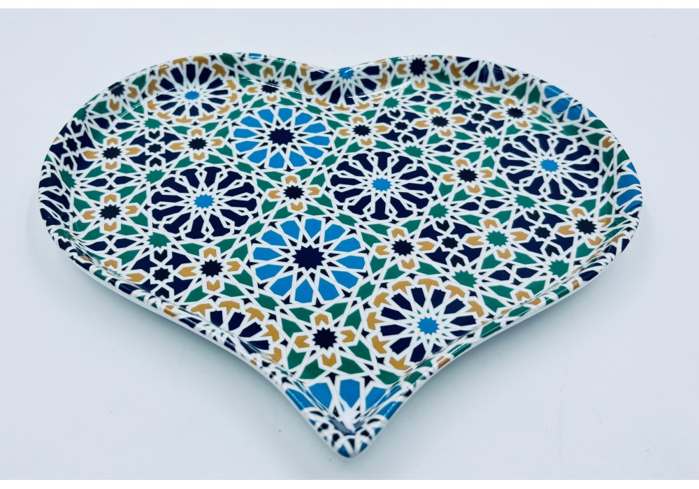 plat en forme de coeur décor au chromo Alhambra pour poser vos petits gâteaux ou vos tartines