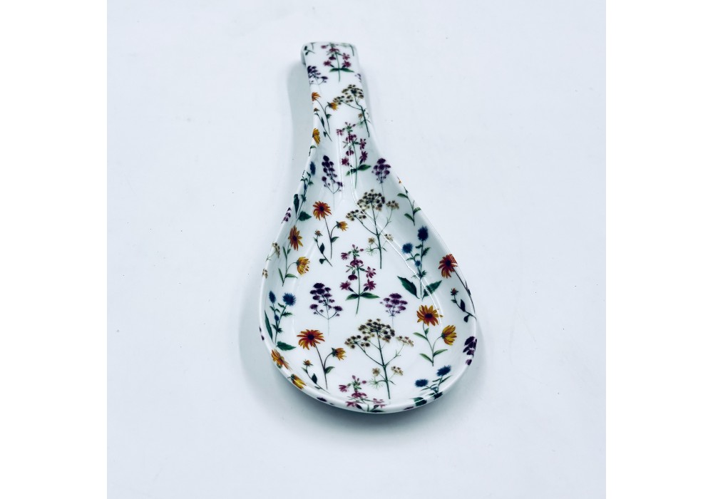 repose cuillère à poser près de votre plaque de cuisson en porcelaine décorée au chromo de petites fleurs