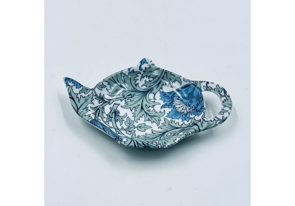 repose sachet de thé en porcelaine en forme de théière décoré au chromo