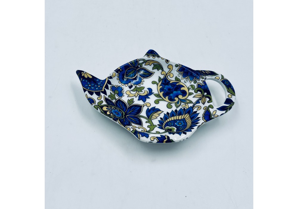 repose thé L11,4 x l8,5 cm en porcelaine forme théière décoré au chromo