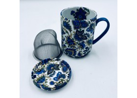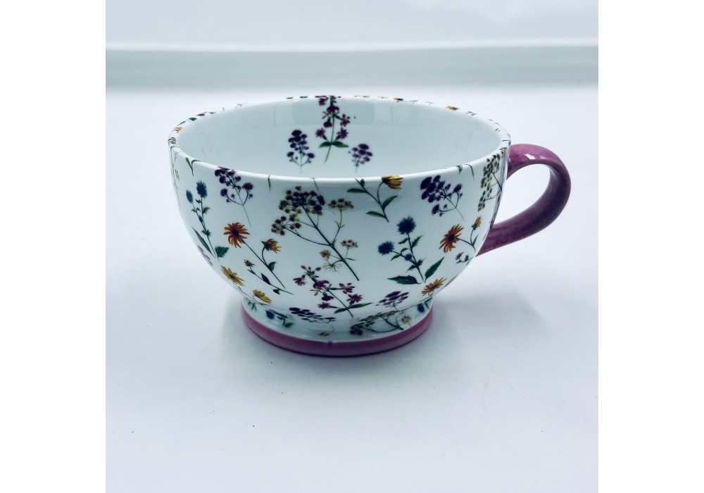 Tasse jumbo à anse 70cl décor au chromo de petites fleurs des champs anse peinte à la main