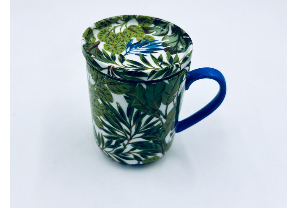 tisanière en porcelaine 3 pièces filtre en métal décorée au chromo anse peinte à la main